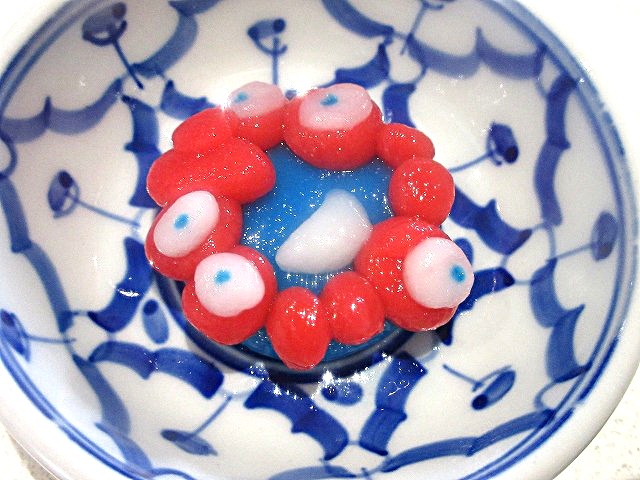 小さいミャクミャクは作りにくいですね。適度なサイズで作ってみてください。目はフードカラーでつけました。