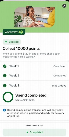 今回のオファーは、1週間で$120以上の買い物を3週間続けると10,000 Everyday Rewardsポイントもらえるというものでした。